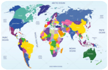 Il mondo e' suddiviso in 5 grandi aree: Europa, Asia, Africa, Americhe e Oceania. Queste grandi aree si chiamano continenti. L'Europa e l'Asia sono unite e a volte vengono chiamate Eurasia. Le Americhe sono due grandi continenti che si chiamano America Meridionale (o America Latina o America del Sud) e l'America Settentrionale (o Nord America). Sono uniti solo da un piccolo pezzo di terra che si chiama istmo di Panama. L'ceania e' formata da tantissime piccole isole e dall'Australia. L'Africa e' attaccata all'Asia dall'istmo di Suez. Alcuni geografi considerano un continente anche il polo Sud che si chiama Antartide. Quindi in totale i continenti possono essere anche 7: EUROPA, ASIA, AMERICA MERIDIONALE, AMERICA SETTENTRIONALE, AFRICA, ANTARTIDE, OCEANIA.